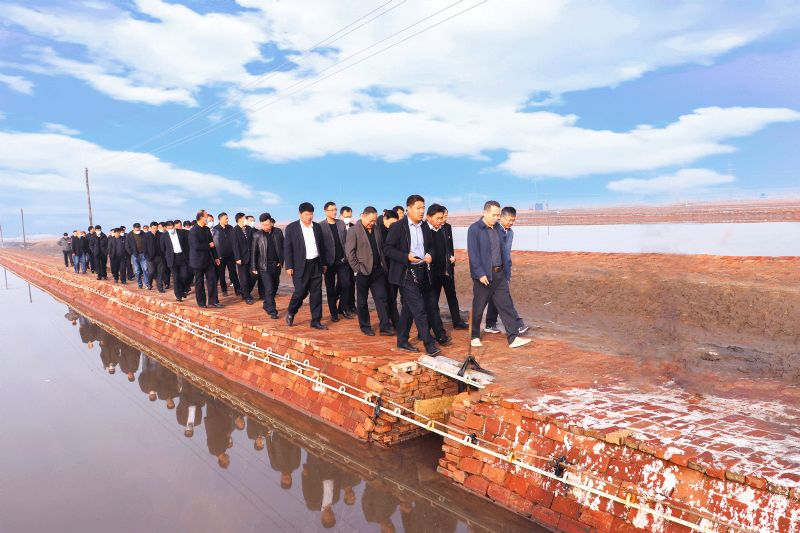上午,與會人員集中乘車到長蘆公司儲鹵系統(tǒng)改造工程現(xiàn)場、26隊扒鹽現(xiàn)場、溴素擴(kuò)能升級改造項目現(xiàn)場、建筑工程公司施工工地現(xiàn)場進(jìn)行了現(xiàn)場觀摩,并聽取了所在單位負(fù)責(zé)人的現(xiàn)場介紹。黨委書記、董事長劉建軍對以上公司的工作給予充分肯定,并提出了指導(dǎo)性意見。