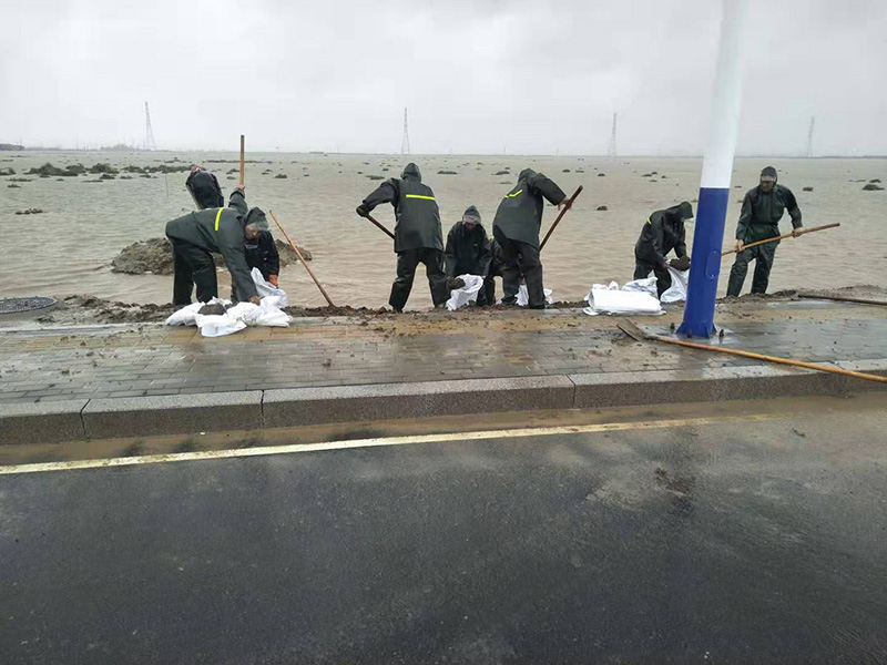 幾個晝夜中,公司領(lǐng)導班子不間斷巡查汛情危險地段和各個排淡下口,查看和掌握水位及流量情況,漲潮時及時安排排淡閘關(guān)閉,退潮時及時提開閘門,確保了潮水不倒灌,淡水及時排出,并和各相鄰單位溝通協(xié)調(diào),開辟新的排淡路線,盡快消除汛情、險情。8月9日晚到13日,整個長蘆鹽業(yè)公司生產(chǎn)區(qū)汛情不斷,防汛突擊隊和制鹽一線全體職工晝夜巡邏,及時搶險。據(jù)統(tǒng)計,本次搶險救災(zāi)共用編織袋21000余條,鐵絲500余公斤,葦席900余領(lǐng),木樁2000余根,動用挖掘機14臺、鏟車7臺,機械搶險95小時,投入搶險人員2700人次,竭盡全力消除淡水壓灘的險情。重大災(zāi)情面前,長蘆鹽業(yè)公司顧全大局,為保障渤海新區(qū)港城區(qū)雨水及時外排,制鹵二工區(qū)階段性封閉了淡水排放口,又及時在一揚揚水站為新區(qū)排水提供供電,并且主動降低滄海公園水位,保證港城排水設(shè)備正產(chǎn)運轉(zhuǎn)、免遭高水位損壞,為港城居民正常生產(chǎn)生活貢獻力量,體現(xiàn)了高度的責任感和愛崗奉獻的滄鹽精神。在歷史罕見的超強臺風、特大暴雨面前,長蘆鹽業(yè)公司全體干部職工無畏無懼,搏風擊雨,沒發(fā)生任何外圍淡水壓灘現(xiàn)象,竭盡全力減少鹽斤、塑苫、企業(yè)財產(chǎn)損失。