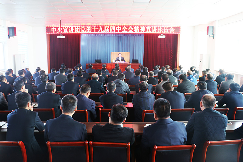 11月11日上午,中央宣講團(tuán)黨的十九屆四中全會(huì)精神宣講報(bào)告會(huì)在石家莊舉行,公司黨委組織全公司中層副職以上管理人員100多人,通過在公司設(shè)立的分會(huì)場收聽收看了宣講報(bào)告。