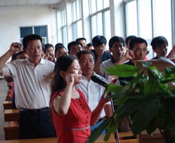 新發(fā)展黨員進行入黨宣誓