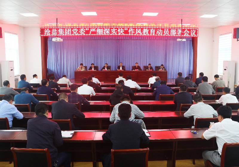 黨委副書記李蜻海宣讀了《中共滄州鹽業(yè)集團(tuán)有限公司委員會(huì)關(guān)于鞏固深化“不忘初心、牢記使命”主題教育成果在全體黨員干部中開展“嚴(yán)細(xì)深實(shí)快”作風(fēng)教育的實(shí)施方案》!皣(yán)細(xì)深實(shí)快”作風(fēng)教育從2020年10月10日開始,到2021年1月10日基本結(jié)束,分為強(qiáng)力動(dòng)員部署、深化學(xué)習(xí)研討,嚴(yán)格對(duì)標(biāo)對(duì)表、深入檢視查擺,深刻剖析根源、認(rèn)真組織整改,全面系統(tǒng)總結(jié)、形成長(zhǎng)效機(jī)制四個(gè)階段,并通過開展作風(fēng)教育,做到“嚴(yán)”字當(dāng)頭、“細(xì)”字用心、“深”字發(fā)力、“實(shí)”字落地、“快”字提速五大目標(biāo)。