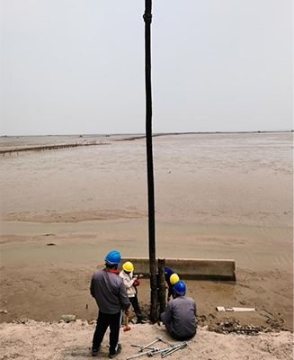 電力公司領(lǐng)導(dǎo)班子對(duì)恢復(fù)工程高度重視,因原路由被徹底毀壞,常規(guī)線路架設(shè)方式不適用恢復(fù)工程。在多方協(xié)調(diào),確定了線路路由后,經(jīng)過(guò)多次現(xiàn)場(chǎng)勘查,集思廣益,反復(fù)研究,最終確定了施工方案,決定創(chuàng)造性地采用地樁連接固定的方式豎立電桿。5月13日,在完成前期測(cè)量、定位、材料設(shè)備等準(zhǔn)備工作后,工程正式啟動(dòng)。電力公司工程部職工按照施工方案,在多機(jī)械的配合下,克服環(huán)境惡劣、線路長(zhǎng)等不利因素,于5月20日,完成了電桿豎立工作。