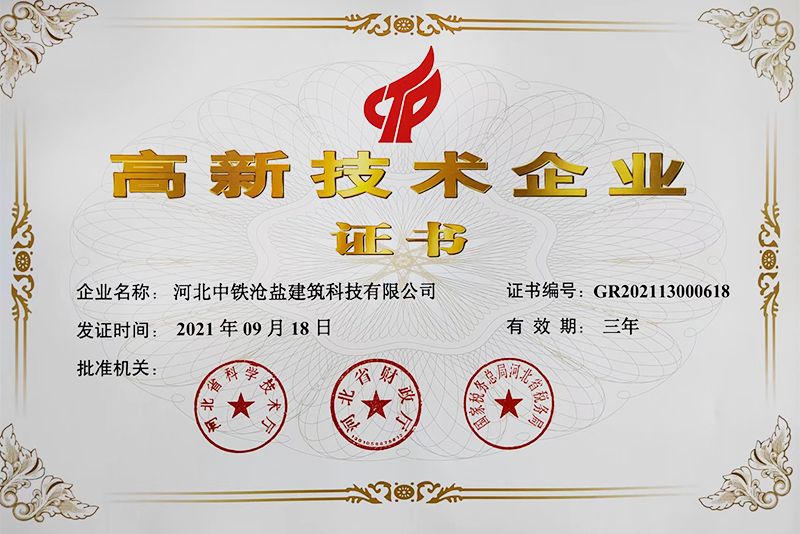 成為省級“高新技術(shù)企業(yè)”,將為中鐵滄鹽的產(chǎn)業(yè)發(fā)展、資金補(bǔ)充、資質(zhì)補(bǔ)強(qiáng)、訂單承攬、稅收優(yōu)惠等工作打下良好基礎(chǔ)。