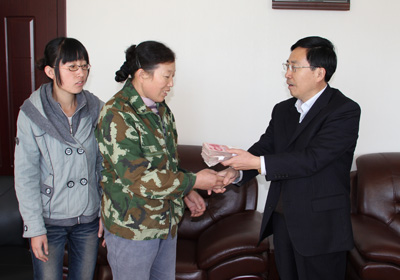 10月25日,當(dāng)董事長程同海將寄托著1640多名干部職工哀思和祝福的捐款交到王翠榮手中時(shí),王翠榮感動得熱淚盈眶,連聲說:謝謝,謝謝大家的關(guān)心。