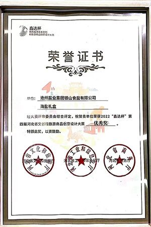 本次大賽由河北省文化和旅游廳、河北省工業(yè)和信息化廳、河北省商務(wù)廳聯(lián)合舉辦,自2022年4月開(kāi)始啟動(dòng)。為了提升公司產(chǎn)品影響力,提升品牌形象,銀山食鹽有限公司積極準(zhǔn)備,確定以滄鹽牌“海鹽禮盒”為參賽作品。宣傳部配合銀山公司精心準(zhǔn)備,專(zhuān)門(mén)派出姬曉曼全程參與設(shè)計(jì)和路演。初賽采取網(wǎng)絡(luò)投票、視頻介紹的方式進(jìn)行。滄鹽牌“海鹽禮盒”經(jīng)過(guò)層層選拔篩選,與其他7件作品從全市眾多參賽作品中脫穎而出,代表滄州市入圍河北省文創(chuàng)和旅游商品創(chuàng)意設(shè)計(jì)大賽決賽。2022年12月14日,第四屆河北省文創(chuàng)和旅游商品創(chuàng)意設(shè)計(jì)大賽決賽在石家莊以視頻會(huì)議加網(wǎng)絡(luò)直播的形式舉行,選手通過(guò)網(wǎng)絡(luò)進(jìn)行路演,評(píng)審線上進(jìn)行打分。最終,滄鹽牌“海鹽禮盒”榮獲河北省文創(chuàng)和旅游商品創(chuàng)意設(shè)計(jì)大賽優(yōu)秀獎(jiǎng)、滄州市文創(chuàng)和旅游商品設(shè)計(jì)大賽創(chuàng)新創(chuàng)意獎(jiǎng)。