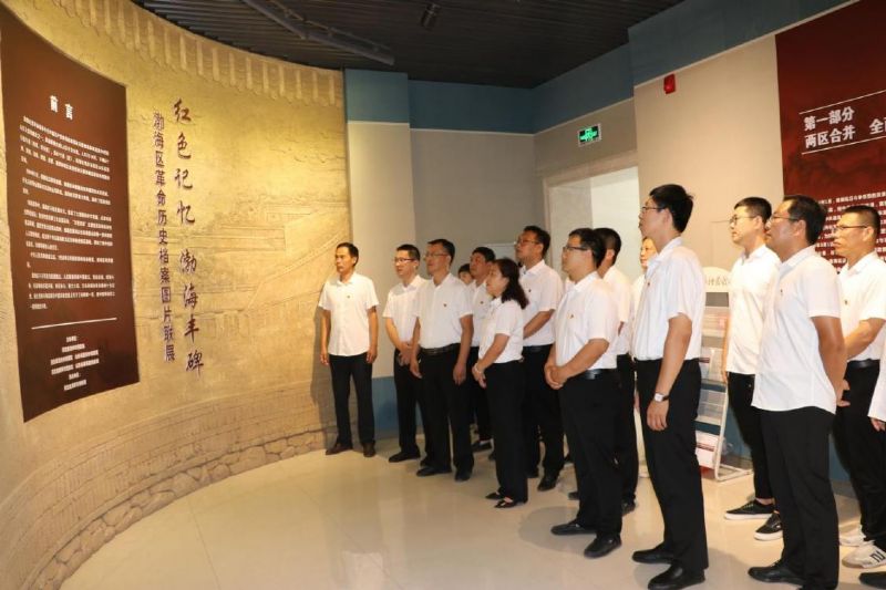 為深入貫徹黨的二十大精神,慶祝中國共產(chǎn)黨成立102周年,常態(tài)化長效化開展黨史學(xué)習(xí)教育,從6月下旬開始,黨委組織廣大黨員以總支、支部為單位在渤海新區(qū)黃驊市博物館參觀了“紅色記憶 渤海豐碑”渤海區(qū)革命歷史檔案圖片聯(lián)展。
