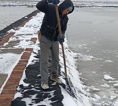 青鋒公司走上街頭開展義務(wù)掃雪除冰活動(dòng),對(duì)結(jié)冰較厚和積雪嚴(yán)重的路面調(diào)動(dòng)鏟車等機(jī)械進(jìn)行破冰和清運(yùn)。鹽區(qū)及時(shí)片池,降雪后對(duì)結(jié)晶池采取撤鹵躲硝,保證原鹽質(zhì)量。