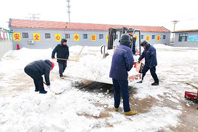 12月13日至15日的降雪天氣過程,場區(qū)降水量達(dá)到10.3毫米,各生產(chǎn)廠區(qū)積雪厚度超過10厘米,給職工出行和正常生產(chǎn)帶來較大影響。15日清晨,各單位積極行動(dòng),組織在崗黨員干部職工,全力清除積雪。