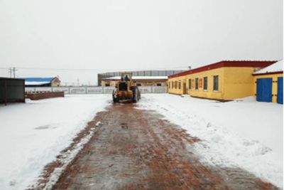 建筑工程公司調(diào)配車輛對(duì)場區(qū)道路及院內(nèi)積雪進(jìn)行清理。