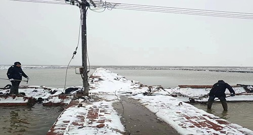 根據(jù)天氣預(yù)報,長蘆公司提前做好保鹵、加深結(jié)晶池、防滑防凍、留崗值班、交通安全等防災(zāi)減災(zāi)安排。全體生產(chǎn)管理人員、制鹵人員堅守崗位,冒著暴風雪寒潮開啟循環(huán)串壕、融化積雪,徹夜進行結(jié)晶池和調(diào)節(jié)池片淡,盡最大限度減少鹽鹵損失。