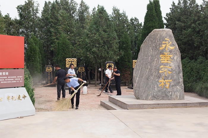 活動中,干部職工對革命烈士紀念碑行鞠躬禮,緬懷烈士們的豐功偉績。隨后,大家對陵園的環(huán)境衛(wèi)生進行了全面清掃,對每一塊烈士墓碑進行了擦拭,對人民英雄祠堂進行了整理。