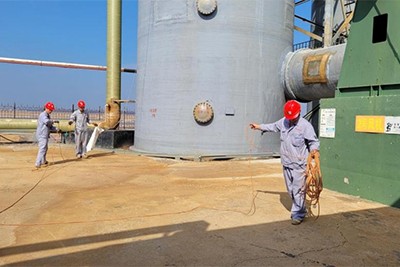 走進(jìn)廠區(qū),機(jī)器的轟鳴聲交織成一曲獨(dú)特的生產(chǎn)交響樂。在溴素生產(chǎn)氣化區(qū)、富集區(qū)、提取車間,生產(chǎn)帶班長正認(rèn)真地盯著各項數(shù)據(jù)指標(biāo)的變化,仔細(xì)進(jìn)行記錄和分析,每一個細(xì)微的參數(shù)變動都逃不過他的眼睛。班組長陳金浩說:“吹溴工藝的化工生產(chǎn)過程需要時刻保持精神專注,不能有絲毫的懈怠馬虎,不然會大大影響溴的生產(chǎn)質(zhì)量和產(chǎn)量。雖然很希望與家人一起團(tuán)聚,但在這個崗位上就要履行好自己的工作職責(zé)!必(fù)責(zé)設(shè)備維護(hù)的老黨員李兆峰師傅也沒有休息,他帶領(lǐng)著維修團(tuán)隊不停穿梭在各個設(shè)備之間,仔細(xì)地巡檢、認(rèn)真查看各種泵類、閥門、流量計等設(shè)備運(yùn)轉(zhuǎn)情況。他們拿著工具,有條不紊地擰緊每一顆螺絲、擦拭每一個零件。兆峰師傅表示:“設(shè)備的正常運(yùn)行是整個溴素生產(chǎn)的關(guān)鍵,更是安全生產(chǎn)的屏障,我們多付出一點,生產(chǎn)就多一份保障,不能因為是節(jié)日就放松對設(shè)備的檢查維護(hù)!