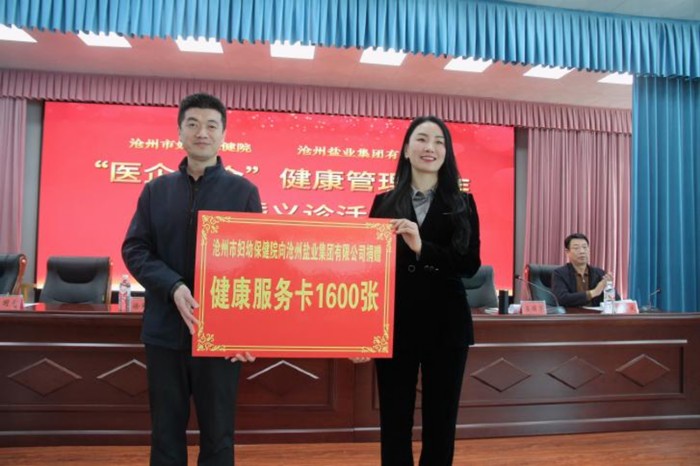在參會(huì)人員的共同見(jiàn)證下,張立莊、徐聞鉑分別代表滄鹽集團(tuán)、滄州市婦幼保健院簽訂了“醫(yī)企融合”健康管理合作意向書(shū)。張立莊、狄彬、徐聞鉑、崔國(guó)光共同為“醫(yī)企融合”健康管理合作單位揭牌。崔國(guó)芳代表滄鹽集團(tuán)現(xiàn)場(chǎng)接受了滄州市婦幼保健院捐贈(zèng)的1600余張健康服務(wù)卡。