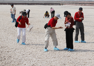 考察團(tuán)參觀了公司的海鹽采扒現(xiàn)場(chǎng)、銀山碘鹽公司以及中國(guó)鹽業(yè)博物館。在海鹽采扒現(xiàn)場(chǎng),老干部們進(jìn)入結(jié)晶池,饒有興致地體驗(yàn)了親手采拾原鹽的樂(lè)趣。通過(guò)參觀,老干部們對(duì)公司近幾年所取得的發(fā)展成績(jī)給予了高度評(píng)價(jià),并對(duì)中國(guó)鹽業(yè)總公司順利推進(jìn)“兩步走”發(fā)展戰(zhàn)略,實(shí)現(xiàn)做強(qiáng)做優(yōu)目標(biāo)堅(jiān)定了信心。