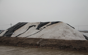 災(zāi)情發(fā)生后,公司領(lǐng)導(dǎo)第一時(shí)間趕赴受災(zāi)現(xiàn)場,組織全體干部職工進(jìn)行抗災(zāi)自救。各制鹽場不等不靠,斗志不減,搶排淡水,搶修塑苫。在不到一天的時(shí)間里,可修復(fù)的塑苫就初步搶修完畢,為6月8日和9日的雷雨天氣做好了充分準(zhǔn)備。雖然8日強(qiáng)對(duì)流天氣沒有降雨,但短時(shí)大風(fēng)又使6日已受災(zāi)損傷的鹽碼苫封材料再次受創(chuàng),一線干部職工又加緊搶修,保證了苫膜的度雨能力。